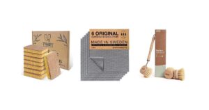 These brushes are a simple swap to help shrink your kitchen’s plastic footprint. Bamboo handles and natural bristles are renewable and break down faster than synthetic options.