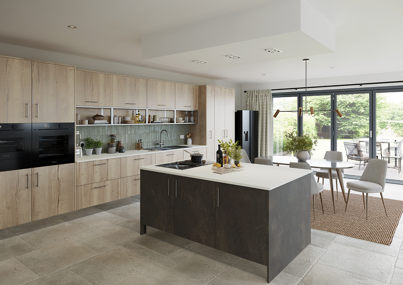 Textura exudes modern elegance, combining the beauty of textured woodgrain and stone-inspired finishes. Thoughtfully curated to evoke warmth and depth, each surface pairs seamlessly with neutral tones for a sophisticated, layered aesthetic